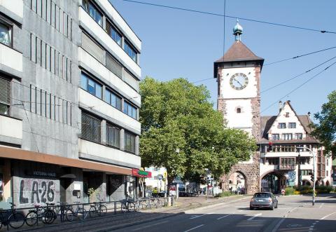 Sie erreichen uns von der Stadtmitte aus mit der Straßenbahn Linie 1 (Richtung Littenweiler), Haltestelle: „Oberlinden“, dann durchs Schwabentor, über den Fußgängerüberweg gleich im ersten Gebäude.